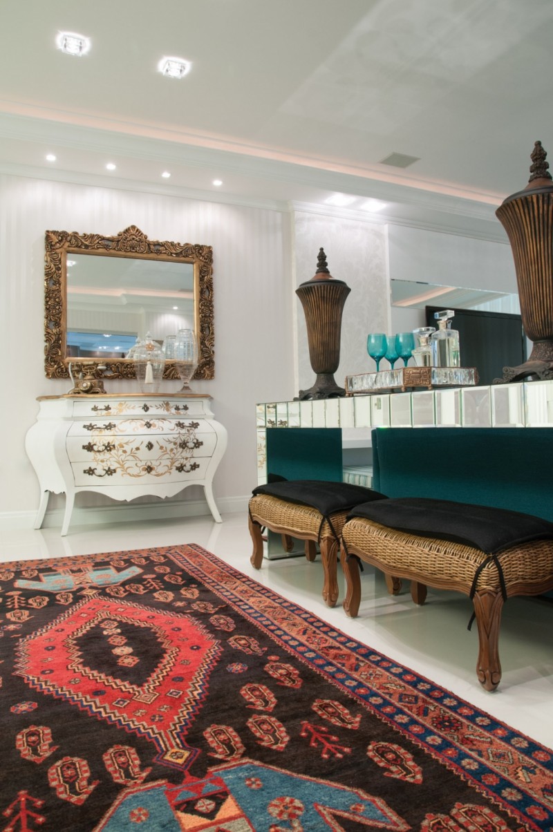 Silvia e Ivo iniciaram o trabalho praticamente sobre a planta, adequando os ambientes às necessidades do casal, às dos seus filhos e netos. “Por ter uma boa divisão e disposição, não houve alteração no layout”, conta Ivo. As aberturas originais, o forro em gesso e o revestimento de piso – porcelanato na área social e laminado de madeira nos ambientes íntimos – igualmente foram preservados.
