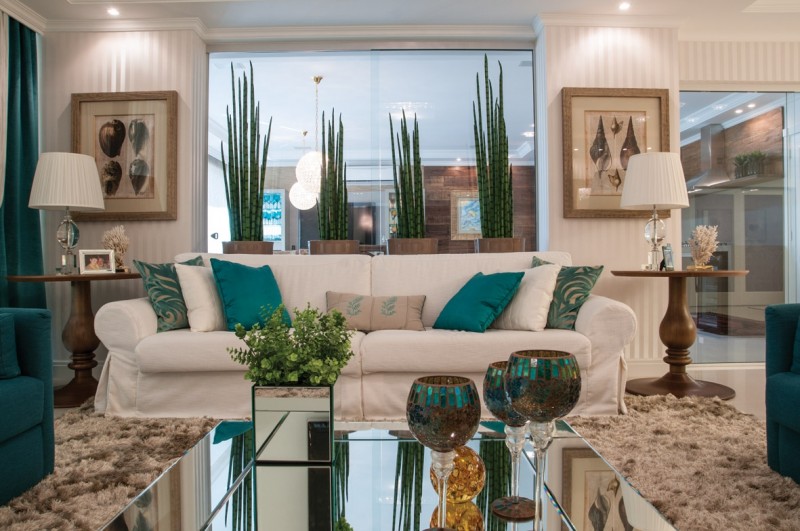 Ao elegerem o verde esmeralda como destaque na ambientação deste apartamento de praia, em Itapema, os profissionais deram o tom do clima descontraído, alegre e elegante pretendido pelos proprietários. Um apartamento elegante, claro e com “cara de praia”. Era isso que esperava o casal de empresários para o apartamento de veraneio da família, em Itapema.